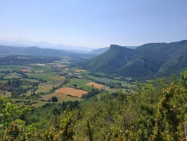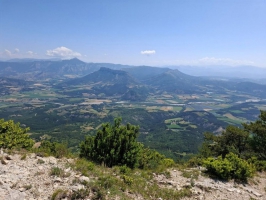 Depuis les crêtes d’Aumage et de l’Eyglière, le panorama est exceptionnel. À l’est, en contrebas, s’étendent les vallées du Buëch et de la Blaisance. Au centre de ces crêtes, se dresse le Rocher de Beaumont, culminant à 1546 m, et offrant un point de vue remarquable à 360° sur les massifs alentours : Préalpes de Digne, Dévoluy, Écrins au loin, et même le Mont Ventoux. Depuis le sommet, on profite aussi d’une magnifique vue sur le village de Serres, le Buëch et la Drôme provençale.