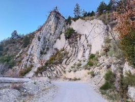 Les Alpes provençales sont marquées par une forte tectonique, notamment des plis et des failles, visibles dans le paysage. On peut observer de nombreuses roches aux plis singuliers. Ce sont des strates de roches sédimentaires déformées en plis. Ces plis sont dus aux forces tectoniques exercées lors de la formation des Alpes. La collision horizontale des plaques tectoniques a comprimé des couches de sédiments, initialement à plat au fond des mers, créant des plis et des failles.