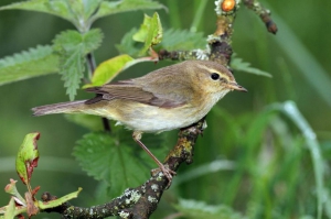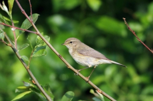 Le Pouillot véloce (Phylloscopus collybita) est un tout petit oiseau d'environ 10 cm de long et pesant moins de 10 g. Il fréquente principalement les forêt denses ou les boisement humides, où son plumage brun-verdâtre lui permet de se camoufler dans la végétation. Bien qu'il soit discret et difficile à repérer, il est facilement identifiable à son cri caractéristique, un "huit" interrogatif qu'il émet régulièrement.