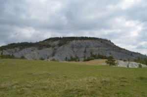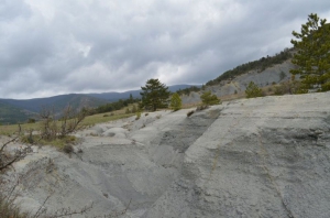 Ces reliefs sombres et ravinés sont des marnes, appelées aussi "Terres Noires". Ce sont d’anciens dépôts sédimentaires marins, accumulés il y a environ 170 millions d’années, au fond de l’océan qui recouvrait le sud-est de la France au Jurassique moyen. Principalement composées d’argile et de calcaire, elles forment des sols très sensibles à l'érosion, se gorgeant d'eau lors des intempéries et provoquant glissements et creusements de terrain.