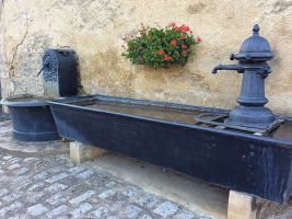 Cet ensemble de fontes comprend 2 bassins semi-circulaires avec une arrivée d'eau par une fontaine sculptée.