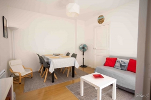 Appartement T3 de 49 m² classé 3* situé au 1er étage d'une maison avec accès indépendant, dans un quartier tranquille et très calme. Stationnement gratuit dans la rue. Appartement très lumineux avec séjour, cuisine indépendante, 2 chambres ( 1 lit de 160x200 + 2 lits de 90x200), salle d'eau.Terrasse de 22 m².Vous êtes situés à 350 mètres de la grande Plage du sillon, des Thermes Marins et à 300 m des commerces (boulangerie, supermarché, traiteur, marché...), à 750 mètres de la vieille ville, à 950 mètres des gares TGV et routière. Possibilité de venir vous chercher à la gare. Bus tous les 15 minutes, arrêt à 300 mètres de l'appartement. Animaux de compagnie de petites tailles acceptés.