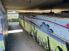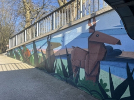Sous le pont de la RD960 à Mardié, le Département du Loiret a fait appel à l’artiste Demsé, aussi connu sous le nom de Mister Couleur, pour réaliser une fresque colorée et contemporaine.