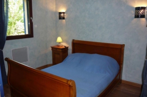 A Cancale, à 1.5 km de la mer, des plages et du Port de la Houle. Maison contemporaine à ossature bois situé à proximité du propriétaire. Terrain avec salon de jardin et barbecue. Parking privé. Vous êtes à 15 mn de St-Malo et à 40 mn du Mt-St-Michel. Nombreux attraits touristiques.Rez-de-chaussée : Salle de séjour avec coin salon, cuisine aménagée. 1 chambre avec 1 lit double. Salle d'eau avec WC. Etage : 1 chambre mezzanine avec 1 lit double, 2 lits 1 personne pour enfants.