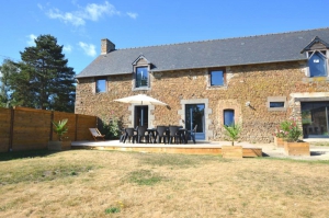 Chaleureux avec ses murs en pierres, ses poutres et son grand manteau de cheminée avec poêle à bois, ce grand gîte indépendant en pierres de pays, situé à proximité des propriétaires., offre un confort moderne et une décoration aux tons actuels. Vous y profiterez d'une terrasse ouverte sur la campagne agricole au nord-est et d'un jardin au sud-ouest sans vis-à-vis avec salon de jardin et barbecue. A disposition : jeux de boules et palets. Vous êtes à 3 km du centre-bourg, 10 km de Dol de Bretagne.