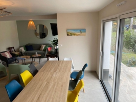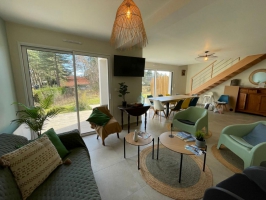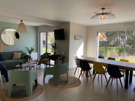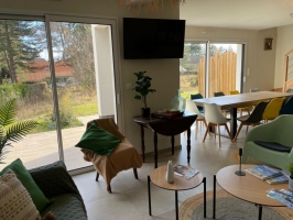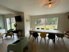 Située à 10 mn du centre et de la plage, "L'Art de l'Eau" vous offrira un vaste logement de environ 100 m2 pour maximum 9 personnes avec 3 salles de bains au sein d'une petite copropriété. Vaste séjour avec de grandes baies vitrées. Construction récente de 2024, cuisine équipée. Le calme près de la plage et du centre