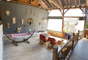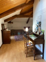 Au deuxième étage d’une maison de type commingeoise du XIX ème, vous bénéficierez d’un espace privatif comprenant une chambre à coucher avec salle de bain/WC, ouverte sur un salon.La chambre à coucher dispose d’un lit double de 180 cm et un lit une place. Le linge de toilette est fourni.Le salon est équipé d’une table basse, trois assises dont deux chauffeuses convertibles en lit d’appoint, une bibliothèque pourvue de livres divers et des jeux de société. Vous trouverez également un plateau de courtoisie de même qu’un secrétaire avec des brochures de tourisme.L’été, vous pourrez prendre votre petit déjeuner sur la terrasse couverte ou bien tout simplement prendre le temps de vous reposer dans le hamac ou des fauteuils tout en regardant le pic du Cagire …L’hiver, vous pourrez profiter de la chaleur d’un bon feu de cheminée dans le salon et pour les musiciens, jouer quelques notes au piano pour le plaisir de tous.Une table d’hôte pourra vous être proposée sur réservation.