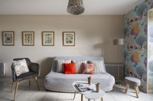 Situé dans l’aile face à la mer de notre demeure du 17e siècle, ce gîte offre une vue mer exceptionnelle sur la Baie du Mont-Saint-Michel.Entièrement rénové et décoré avec soin, il est composé :Au rez-de-chaussée : séjour avec salon ouvrant sur la terrasse, cuisine entièrement équipéeTerrasse privative vue mer, avec salon de jardin, transats et barbecue A l’étage : 1 chambre vue mer avec un lit double, salle de bain, WCToute l'année, accès à la piscine couverte et chauffée.Draps et linge de toilette fournis. Lits faits à votre arrivée. Ménage de fin de séjour inclus.