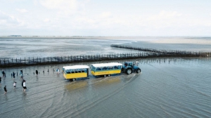 Au départ de Cherrueix, le Train Marin vous permet de découvrir de façon unique les richesses de l’exceptionnelle Baie du Mont Saint-Michel. Les jours et horaires des visites sont rythmés par les marées. Nos « chauffeurs-guides » vous emmènent jusqu’à 5 kilomètres du rivage pour une visite commentée de 2 heures. Vous y découvrirez les pêches traditionnelles et le métier de mytiliculteur (éleveur de moules).
