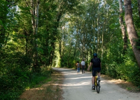 Vous empruntez une branche de la Bella Via, majestueuse véloroute qui traverse les départements montagneux de la Haute-Savoie, de la Savoie, de l’Isère et de la Drôme.Elle relie Seyssel et Chanaz à Valence, en passant par des villes telles qu’Annecy, Aix les Bains, Chambéry, Grenoble et bien sûr Romans sur Isère, sur la rive droite de l’Isère et Bourg de Péage sur sa rive gauche.Cette route cyclable de 280 km est accessible à de nombreux cyclistes mais aussi piétons, car elle suit le cœur de larges vallées alpines, offrant de magnifiques vues sur le Mont Blanc, puis en se dirigeant vers le Sud, sur les massifs du Jura, des Bauges, de la Chartreuse, de Belledonne et du Vercors, fournissant des panoramas en constante évolution.Le parcours est jalonné de paysages variés et d’ambiances diversifiées. Deux branches principales composent la Belle Via : la V62, qui relie Annecy à Albertville sur une distance de 46 km, et la V63, qui relie Chanaz à Valence, en passant par des villes comme Aix les Bains, Chambéry, Grenoble et Romans, en suivant principalement la vallée de l’Isère, offrant des vues sur les massifs environnants et traversant des zones riches en patrimoine historique et naturel. Alors, bonne route et belle route !