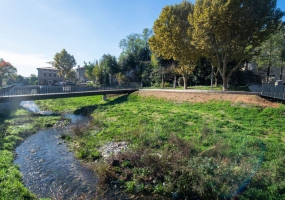 Si l’Isère longe la ville de Romans, la Savasse la traverse. Savasse signifie « sauvage » car le débit peut passer de 50 litres à 50 mètres cube par seconde.Longue de plus de 24 km, elle prend sa source au nord dans la forêt de Thivolet à St Antoine l’Abbaye puis traverse 8 communes, avant de se jeter dans l’Isère, à proximité du centre historique de Romans.Un temps outil de travail des tanneurs à la fin du XIXème siècle, elle fut recouverte au milieu du XXème siècle pour cacher le cloaque qu’elle tait devenue et ainsi permettre aux voitures, de plus en plus nombreuses, de trouver refuge sur le parking au-dessus d’elle.La fragilisation du béton a incité la ville à supprimer le parking après 70 ans de bons et loyaux services.Romans n’est pas la seule ville à faire ce choix de redonner vie aux rivières qui traversent nos cités : à 600 km au nord, Longwy ville frontalière avec le Luxembourg et la Belgique a fait le même choix en redonnant vie à la Chiers, un affluent de la Meuse.Pour la Savasse, il a fallu redessiner des berges, recréeer un lit en galet, mais aussi déplacer en amont des nichoirs pour la plus grande colonie de chauve-souris de la région qui avait investi depuis de decénnies le dessous du tablier de béton.Tout comme la place Jean Jaurès, la découverte de la Savasse illustre l’évolution de Romans, véritable lien entre riche passé historique, nécessités contemporaines impérieuses de renaturation et nouveaux liens urbanistiques pédestre entre les faubourgs de la ville et son cœur historique.