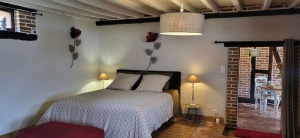 La Couarderie est une jolie maison rénovée, datée de 1898, dans le style des longères solognotes. Tommettes et parquets au sol, poutres anciennes, jardin paysager et espaces verts bien entretenus. Joli cachet pour cette grande chambre en rez-de-chaussée de 85m² comprenant une entrée avec espace petit déjeuner, un grand espace bureau et salon et une salle d'eau privative . Terrasse indépendante permettant le service du petit déjeuner. Transats et piscine. Lit 160, salon avec poêle à bois (pare-feu). Possibilité lit bébé. Parking ombragé et sécurisé.