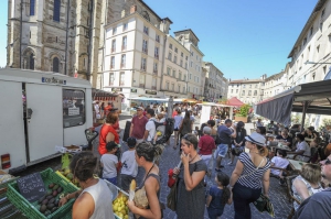 Cette place remonte aux origines de Romans, au Moyen Age, après la construction de la collégiale Saint-Barnard et le développement d’une ville accueillant des marchands du monde méditerranéen et du royaume de France.Cette place est alors à la fois le cimetière de la paroisse et l’espace où se tiennent les foires et les marchés, confirmés par une charte de 1157.Les immeubles qui la bordent, édifiés au XVe et XVIe siècles (la Renaissance) par les chanoines, ont été embellis avec des façades de style Louis XV. La tradition du marché se perpétue, en ce XXIe siècle, le dimanche matin, dans une ambiance toute méridionale.