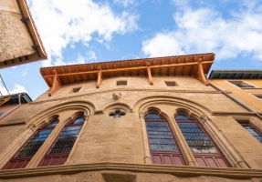 Cette maison a été élevée vers 1300 sur les bords de la rue du marché. Sa façade, en pierre de molasse tirée des carrières de Châteauneuf-sur-Isère, répond aux canons de l’architecture gothique civile. Le propriétaire, certainement un drapier, a fait sculpter une tête de mouton sur la façade.Au rez-de -chaussée, des magasins et une écurie. A l’étage, une grande pièce à vivre, éclairées par deux grandes baies géminées et une fenêtre quadrilobée.Au XVIe siècle, le propriétaire est Gaspard de Jomaron, consul de Romans et contrôleur général des finances du Dauphiné. AU XVIIIe siècle, de nombreux hôtels particuliers de notables romanais adoptent les canons du style Louis XV, ce qui n’est pas le cas de la maison du Mouton qui est progressivement déclassée.