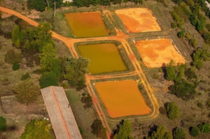 Ci-dessous dans le ravin, se trouve des anciens bassins de décantation d'ocres (accès par l'Ecomusée de l'ocre). L’ocre est un pigment naturel qui a été incorporé comme épaississant dans les produits manufacturés tels que le caoutchouc naturel (joints de bocaux, rustines de vélo...). Il était aussi utilisé dans le bâtiment pour les enduits de façades. Au XIXe et XXe l'exploitation industrielle exportait de gros volumes d’ocre dans le monde entier, puis suite à la grande crise de 1929, elle a été progressivement remplacée par les produits de synthèse. Après la Seconde Guerre mondiale, les carrières ferment progressivement. Aujourd’hui, la Société des Ocres de France exploite encore une carrière à Gargas et produit 1 200 tonnes d’ocre par an.