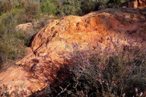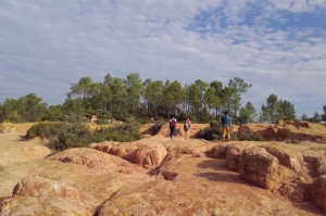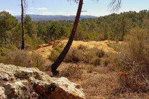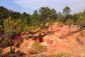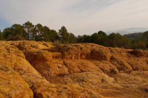 Le cheminement sur cet affleurement de grès bariolés dit de Pied-Bousquet, associé aux fronts de tailles d'ocres, à la bruyère, les pins et les contreforts du Luberon au loin, offre une incroyable palette de couleurs. Aux verts multiples, ponctués d’ombres bleu-noir profondes, et aux blancs éclatants des calcaires, vient s’ajouter, presque avec insolence, la fulgurance des ocres. Sur le massif ocrier du Luberon, la nature et l’Homme ont composé, en notes de feu, une étrange symphonie. Tous les rouges, les verts, les jaunes d’or et de paille, jusqu’aux violets aux reflets indigo, nourrissent les interrogations presque alchimiques du visiteur émerveillé.