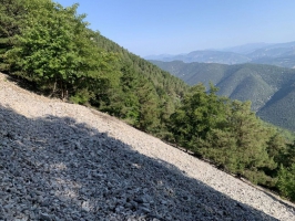 La face Nord du Mont Ventoux est particulièrement abrupte et aride. De nombreuses zones sont recouvertes de pierrier résultat d'une action répétée du gel et du dégel qui a fait éclater le calcaire, fragmentant la roche en blocs et en éboulis. L'éboulis ainsi constitué recouvre un versant où la végétation peine à percer et où les conditions de vie pour la flore sont particulièrement sélectives.