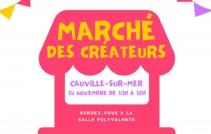 Cauville-sur-Mer organise cette année encore son marché des créateurs, qui aura lieu le dimanche 02 novembre de 10h à 18h, à la salle polyvalente les "Hauts de Falaise".Au programme, vente de bijoux, jeux, décorations, gravures, gourmandises, textiles, teintures murales, bougies, cosmétiques, boules de Noël...Buvette sur place.Entrée gratuite.