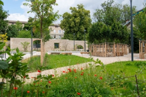 En 1349, le dauphin Humbert II fonde à Saint-Just-de-Claix, sur la route de Grenoble, une abbaye cistercienne à l’intention de sa mère, Béatrix de Hongrie. Au XVIe siècle, lors des guerres de religion, l’abbaye est incendiée par les Protestants et les religieuses décident de s’installer à Romans, dans le quartier Saint-Nicolas, emportant avec elles les cendre de Béatrix de Hongrie.Après la Révolution française et la dispersion des cisterciennes, une partie du couvent qui date du XVIIe siècle, devient une prison puis une gendarmerie. L’autre partie est remise en 1804 à la congrégation du Saint Sacrement qui y établit sa maison-mère et s’est donnée trois tâches : le service des hôpitaux, les secours à domicile et l’enseignement primaire pour les jeunes filles.Suite aux lois de laïcisation, les religieuses sont expulsées en 1906 et les bâtiments deviennent une école publique et laïque. La gendarmerie retrouve en 1942, ses locaux donnant sur la rue Bistour. Pendant la Seconde Guerre mondiale, sa directrice Marie Madeleine Giraudier sauva de nombreux enfants juifs de la déportation. Dans le cadre du Nouveau Plan de Rénovation Urbaine, la ville de Romans a souhaité donner un nouveau souffle à ce quartier historique de la ville : le bâtiment sud de la gendarmerie a été détruit pour mieux laisser rayonner le bâtiment nord à travers un projet immobilier futur de rénovation.La végétalisation de l’îlot Musselon en lieu et place d’une friche a permis de créer un îlot de fraîcheur en plein cœur de ville et d’apaiser les sorties de l’école grâce à la création d’un espace piéton.