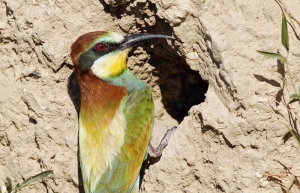 Le guêpier d’Europe ou « chasseur d’Afrique » est un oiseau très coloré qui creuse son nid dans les ocres ou sur les berges sableuses du Calavon-Coulon. Très présent dans le Luberon, il nous quitte en septembre pour l’Afrique et ne revient qu’au mois d’avril pour la nidification. Cette migration est risquée, puisque 30 % d’entre eux ne reviendront pas, mais c’est l’occasion pour les jeunes nés de s’accoupler avant de creuser, à leur tour, un nid dans le Luberon.