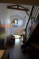 Dans le village de Saint-Elix-le-Château, ce gîte (Le Sourire des Anges) est mitoyen de l'habitation des propriétaires et d'un second gîte (Le Sourire des Anges 2).Terrasse privative et beau jardin paysager clos commun avec piscine chauffée commune aux 2 gîtes . Nombreux sites touristiques alentours, voie verte à 2.8km (cyclotourisme). Le Village Gaulois de Saint-Julien à 4km, le parc accrobranches Tépacap de Rieumes à 15km. Le parking pour un véhicule est privé et clos. Idéal pour privatiser ses vacances avec des amis ou de la famille, les 2 gîtes mitoyens aux entrées et parking indépendants permettent une capacité d'accueil totale de 8 personnes.Au RDC : entrée sur une pièce d'accueil dédiée au sport (rameur et home trainer). Au 1er étage : pièce de jour avec cuisine et coin repas, espace détente, chambre en mezzanine (1 lit 2 pers. en 160), salle d'eau/WC privative + 1 Chambre (1 lit 2 pers. en 160) et salle d'eau/WC privative. Accès Internet wifi. Chauffage par pompe à chaleur et convecteurs d'appoint. Climatisation réversible dans la pièce de séjour.