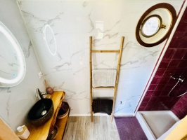 Labellisée Accueil Vélo. Pour un séjour atypique sur le célèbre Canal du Midi, au coeur du Lauragais, entre Toulouse et Carcassonne, venez découvrir la Péniche Dondon ! Amarrée à l'écluse d'Emborrel, sur la commune d'Avignonet-Lauragais, la péniche Dondon a tout pour vous plaire !A seulement 1.5km du village historique où vous trouverez une boulangerie et petite épicerie, poste et gare. De la péniche, vous avez un accès immédiat sur le chemin de halage du Canal, à pieds ou à vélo, et certains sites sont accessibles en voiture ou par la piste cyclable du Canal ; Pélerins de Saint-Jacques, cyclotouristes... vous trouverez là l'étape idéale ! Karoline propose même des petits-déjeuners (ou planche repas/pique-nique) sur demande !Parking devant la péniche.Port-Lauragais à 3 km (location de vélos, espace de découverte, boutique de produits locaux), seuil de Naurouze, baignade au lac de la Ganguise, Revel à 25 km (marché remarquable sous la halle, le samedi matin), lac de Saint-Ferréol à 28 km (baignade et loisirs nautiques)... Toulouse et ses nombreuses attractions ne sont qu'à 40 km, facilement accessibles par l'autoroute à 12 min, et tous les commerces et restaurants sont à 7 km.Péniche chaleureuse pouvant accueillir jusqu'à 7 personnes. On entre dans la cabine du capitaine, aménagée en cuisine entièrement équipée, quelques marches descendent au salon avec table basse relevable pour manger à l'intérieur, un canapé-lit futon 140x200 + un fauteuil en poufs modulaires transformable en lit d'appoint pour 1 personne.Chambre parentale (1 lit king size 160x200), chambre d'enfants (lits superposés 90x190), salle d'eau, WC/buanderie.Climatisation réversible, poêle à granulés, WIFI.Terrasse sur le pont du bateau (transats...), espace repas sur la berge et petit espace apéro, fumeur, café... devant la péniche. Pas d'équipements pour bébé.Le canal étant parallèle à l'autoroute A61, que l'on perçoit à 200m lorsqu'on est à l'extérieur (calme absolu à l'intérieur).
