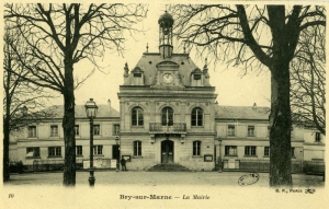 Érigée au cœur de la ville, la mairie de Bry-sur-Marne fut inaugurée en 1877 afin d’accompagner l’essor démographique et urbain de la commune.L’hôtel de ville, conçu par l’architecte Charles-Auguste Coudon, s’inscrit dans le style éclectique de la fin du XIXe siècle, mêlant sobriété classique et élégance décorative. Édifié en brique et pierre, il s’impose par sa façade rythmée, son fronton sculpté et son campanile qui lui confèrent une silhouette reconnaissable. Ce bâtiment, symbole de la vie civique et municipale, témoigne de la volonté de doter Bry d’un édifice représentatif de son identité et de son développement au XIXe siècle.