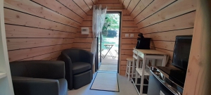 Terrain semi ombragé. Vue sur rivière. Location bungalow, mobil-homes, cabanes. Commerce alimentaire, dépôt des ordures ménagères. Jeux pour enfant, parking, évacuation des eaux usées, accès handicapés. Tennis et piscine à proximité. Accès handicapés.