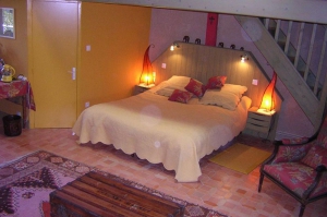 Dans un ancien presbytère de caractère, grande chambre à mi-étage avec mezzanine. Salle de bain privative avec baignoire, douche, WC. 1 lit double, 3 lits simples, 1 lit de bébé. Le petit déjeuner est servi dans la salle à manger du presbytère devant la grande cheminée. Télévision, magnétoscope/DVD, cour, jardin, salon de jardin, parking privé.