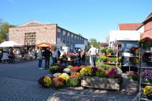 Vente de chrysanthèmes, fleurs d''automne, fruits et légumes de saison, huile, décorations, conseils de jardinage, poteries.