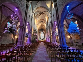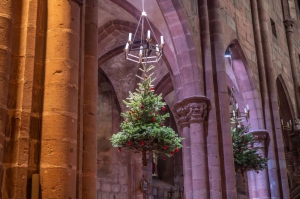 Suspendus sous les arcs de la nef de l'église Saint-Georges, dix sapins retracent les étapes les plus marquantes de l'évolution de la décoration de l'arbre de Noël, du 16e siècle à nos jours.Cette exposition constitue un joli témoin de notre histoire.