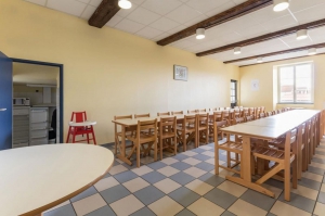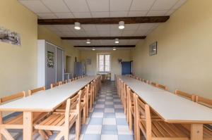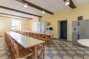 Gîte d'étape et de groupe spacieux et confortable, pouvant accueillir 44 personnes (minimum 7 personnes), randonneurs pédestres, équestres, cyclistes, sportifs, touristes, famille, stages, entreprises, scolaires. Ouvert toute l’année.Gîte labellisé Accueil Vélo.S'agissant d'un gîte d'étape, veuillez noter que vous êtes suceptible de partager le gîte avec d'autres occupants si vous louez pour moins de 44 personnes.Les 13 chambres sur 3 niveaux sont prévues pour 2, 4 ou 6 personnes avec blocs sanitaires à chaque niveau (5 chambres avec douche – 1 chambre PMR pour 2 personnes), le placement des occupants sera effectué par le gestionnaire.Cuisine fonctionnelle équipée pour faire les petits déjeuners et des repas simples (cuisinière 5 feux et four – lave-vaisselle 12 couverts – 2 réfrigérateurs (dont 1 américain) – four à micro-ondes – cafetières – bouilloire – vaisselle pour 44 personnes.Grande salle à manger pour 44 personnesSalle de réunion, idéale pour séminaire en RDC avec vidéoprojecteur, écran, TV, tableau paperboard. Connexion wifi gratuite.Extérieur : barbecue, tables de brasserie et parasols disponibles sur demande - séchoir à linge - Parking : possibilité de 5/6 voitures et parking public à 50 mTARIFS :- Période du 15 avril au 14 octobre - Par personne et par nuitée : 18.00 €- Taxe de séjour (du 15 avril au 14 octobre) – Par personne et par nuitée : 0,27 €- Période du 15 octobre au 14 avril - Par personne et par nuitée : 22,00 €- Taxe de séjour (du 15 octobre au 14 avril) – Par personne et par nuitée : 0,33 €- Location d’une paire de draps et taie d'oreiller(facultatif) : 7,00 €Ordure ménagère, prix par séjour 10€ obligatoire.L'hébergement ne propose pas de prestations de ménage de fin de séjour, le gîte doit être laissé propre.À noter : Le client devra assurer le caractère paisible de la location et en faire usage conformément à la destination des lieux conformément au règlement affiché sur site. Sont exclues les manifestations pouvant occasionner une gêne pour le voisinage ou les autres occupants lorsque plusieurs groupes y sont présents simultanément (enterrement vie de fille ou de garçon, etc.…).