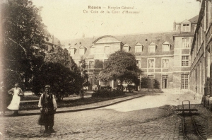 Dans cette Cour d’Honneur, subsistent deux bâtiments du 17e siècle, très représentatifs de l’architecture hospitalière de cette époque, construits par Jacques Gravois, descendant d’une dynastie d’architectes rouennais.Le troisième édifice construit à cette période a été démoli puis reconstruit à la fin du 18e siècle. Il abrite depuis ce moment la Direction Générale de l’établissement.