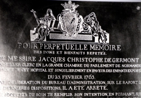 L’abbé Jacques-Christophe de Germont (1684-1763), conseiller-clerc au Parlement de Rouen, est l’un des grands bienfaiteurs des hôpitaux de Rouen du 17e siècle.De substantiels dons d’argent à l’Hôtel-Dieu comme à l’Hospice Général et la fondation d’une crèche sont, entre autres, à mettre à son actif.