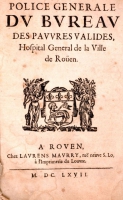 Au 16e siècle, le Grand Bureau des Pauvres Valides est un organisme de gestion chargé de l’économie et de l’administration des personnes démunies non malades : vieillards, enfants trouvés; infirmes, etc. dont l’activité est dispersée dans différents lieux de la ville.C’est en 1602 qu’il s’installe dans le faubourg Martainville devenant Hôpital Général en 1681 par édit du Roi Louis XIV.In