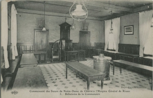 Un bâtiment aujourd’hui détruit et accolé à cette chapelle abrite de 1936 à 1979, la communauté des Soeurs hospitalières Notre-Dame-de-Charité de Rouen qui occupaitauparavant un autre édifice dans la Cour de Germont (voir point d’intérêt N° 25).Cette communauté, dans l’hôpital depuis 1714,n'est plus présente depuis 2021 après le départ de la maison de retraite Boucicaut de la dernière religieuse de cette congrégation.