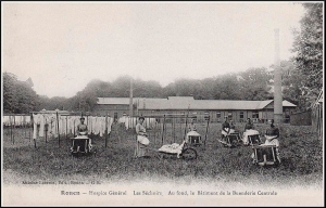 Terriblement dur et dangereux est le travail des blanchisseuses et lavandières qui ont en charge l’entretien du linge de l’hôpital.La succession de tâches à accomplir entraîne gerçures, callosités, panaris, tuberculose, etc.C’est en 1905 qu’apparaîssent les toutes premières mesures d’hygiène à mettre en place pour protéger ces femmes.