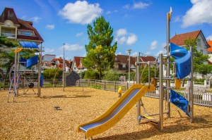 Aire de jeux moderne et sécurisée au cœur de la station balnéaire du Touquet, idéale pour les enfants de tous âges.