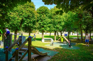 Aire de jeux moderne et sécurisée au cœur de la station balnéaire du Touquet, idéale pour les enfants de tous âges.