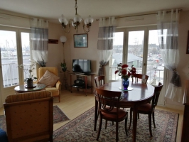 Rare Saint-Malo, quartier Sillon, au 3e étage d'une résidence avec ascenseur et parking privé, appartement T2 bis de 54 m² équipé de Wifi et fibre optique. Appartement très lumineux et ensoleillé pour 2 à 3 personnes avec de grandes baies vitrées (portes-fenêtres).Vue panoramique sur le port et les remparts, orienté Sud et Ouest (balcon-terrasse sur toute la longueur de l’appartement avec accès depuis la chambre et le séjour).Descriptif : Entrée, cuisine, séjour avec couchage (clic-clac), 1 chambre , salle de bain et WC séparés. Local à vélos. Parking privé.