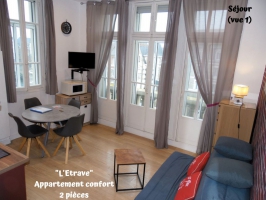 "La Résidence La Hoguette" est composée de 7 studios et appartements. Elle est située au 17 avenue Pasteur à Saint-Malo, à 30 mètres de la grande plage du Sillon. Proche des commerces, de la thalasso et de l’école de surf, à 15/20 minutes à pied de la vieille ville Intra-Muros et à 900 mètres de la gare TGV."L'Etrave" est situé au 2e étage, cet appartement classé 3 étoiles est le plus spacieux de la résidence avec ses 35 m². Il est composé d’un séjour avec kitchenette et d’une chambre avec aperçu mer. Ce meublé est très pratique avec ses 2 salles d’eau avec douche, lavabo et WC. A deux pas de la plage, vous pourrez admirer le coucher de soleil sur la baie de Saint-Malo. La capacité d’accueil est de 3 personnes.Disponibilités, photos, visite virtuelle et réservation : www.residence-saintmalo.com