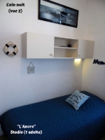 "La Résidence La Hoguette" est composés de 7 studios et appartements. Elle est située au 17 avenue Pasteur à Saint-Malo, à 30 mètres de la grande plage du Sillon. Proche des commerces, de la thalasso, de l’école de surf, à 15/20 minutes à pied de la vieille ville Intra-Muros et à 900 mètres de la gare TGV."L'Ancre" est situé au 1er étage de la résidence. Il vous accueillera lors de vos escapades en solitaire aux abords de la cité corsaire. Fonctionnel, il est composé d’une pièce principale avec coin nuit, kitchenette et d’une salle d’eau avec douche, lavabo et WC. Ce studio est également idéal pour vous poser lors de vos déplacements professionnels, stages ou réunions de travail à Saint-Malo. La capacité d’accueil est d’une personne.Disponibilités, Photos, Visite virtuelle et Réservation sur : www.residence-saintmalo.com