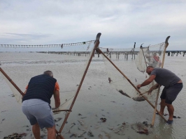 Rando Initiation Pêche à pied, Crevettes, palourdes et cie... en Baie du Mont-Saint-Michel, côté Bretagne Au cœur de la Baie du Mont-Saint-Michel (côté Bretagne), au départ de Cherrueix (35120), je vous guide et vous accompagne en toute sécurité sous forme de Randonnée à marée descendante pour vous initier au plaisir de la pêche traditionnelle à la crevette, palourdes et cie...Cette technique aussi ludique que physique, vous garantie un moment inoubliable Sport/Nature au cœur des éléments et du milieu marin.Lors de la Randonnée en plus de l'initiation à la pêche à pied je vous parlerai de la Baie, du Mont-Saint-Michel (où ont lieu les plus grandes marées d'Europe), de l'estran, des cultures professionnelles maritime (Mytiliculture, Ostréiculture, etc...) de la faune & coquillages, des algues et plantes maritime que nous croiserons sur notre chemin ...A chaque sortie vous pourrez apprendre des choses différentes.En individuel, en groupe, en famille, entre ami(e)s, ... Laissez-vous guider.Tout le matériel de pêche vous sera fourni pour la sortie : Dranet, épuisette, râteau, hôte de pêche, réglette pour mesurer les coquillages, ... Lors de la partie pêche à la crevette nous irons dans l'eau de mi-mollet jusqu'à mi-cuisse (pour les plus grands).Il faudra venir en short, et être équipé de chaussons néoprènes ou de vieilles baskets pour aller dans l'eau.Après la partie pêche à la crevette grise et crevette rose, nous irons direction l’initiation à la pêche aux palourdes, ... une petite halte pourra également se faire devant une pêcherie traditionnelle (un système de pêche dans la Baie qui date du moyen âge).