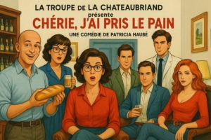 Organisé par la Section théâtre de La Chateaubriand. Julien qui avait disparu depuis huit mois revient chez lui et la 1e chose qu'il dit à sa femme Léa en rentrant est : Chérie j'ai pris le pain ! Mais lorsque quelques minutes plus tard Vincent médecin légiste et nouveau compagnon de Léa tente de lui annoncer que le squelette de Julien a été retrouvé, cela donne lieu à un premier quiproquo. Que s'est-il passé ? Qui est vraiment Julien ? Sur fond d'arnaque à l'héritage organisée par l'assistante de Vincent, un imbroglio commence mêlant un inspecteur pour qui c'est la première enquête, une aide-ménagère un peu décalée. Pour combler le tout, le père de Léa débarque pour déposer son chat en pension. Face à tous ces éléments, Léa ne manquera pas d'énergie pour tenter de se sortir de cette situation. Réservation : https://www.helloasso.com/associations/la-chateaubriand-section-theatre