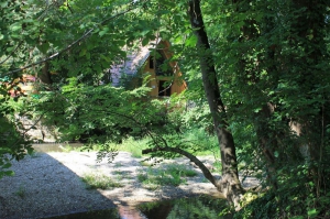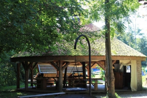 Parties communes aux 3 hébergements : rotonde avec coin cuisine, aire de feu etc...... Bloc sanitaire, douche, wc etc....