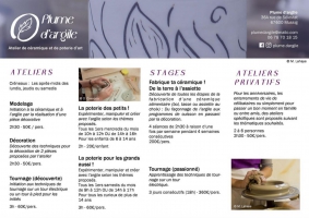 Présentation Plume d’argile est un atelier de céramique et de poterie d’art installé en Centre-Alsace.Après 10 ans de travail dans le domaine de l’archéologie, Delphine Casappa professionnalise sa pratique de la céramique en se formant pendant un an auprès d’une compagnon-potière.