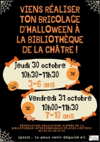 Viens plonger dans l'univers d'Halloween à travers des histoires et des jeux à la bibliothèque pour enfants de 3 à 6 ans. La bibliothèque de La Châtre propose aux p'tits monstres de venir célébrer Halloween et de créer son bricolage d'Halloween.