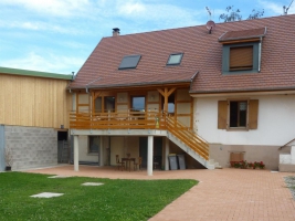 Maison mitoyenne située dans un hameau en pleine campagne, en Centre Alsace, proche de l'Allemagne, d'Europa-park, de la Route des Vins, du Château du Haut-Koenigsbourg,... Au rez-de-chaussée, une pièce de 60 m2 vous permet de vous retrouver tous ensemble, au salon ou autour de la grande table de la cuisine qui est ouverte (congélateur, micro-ondes).A l’étage quatre chambres sont à votre disposition : 1 chambre avec 3 lits 1 personne, 1 avec 1 lit 2 personnes et 1 lit 1 personne, 1 avec 1 lit 2 personnes et 1 avec 2 lits 1 personne. Pour votre confort, deux salles de bains vous sont proposées avec wc. La grande terrasse de 16m² avec mobilier de jardin vous permet de prendre le petit déjeuner au soleil levant ou le diner à l’ombre.