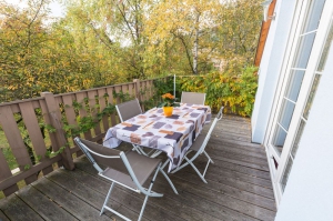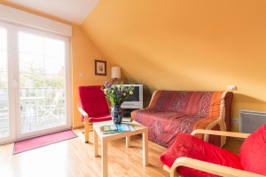 Ce gîte 3 étoiles est parfait pour passer des vacances actives à Châtenois, sur la Route des vins d'Alsace. Situé à l'arrière de la cour des propriétaires, il occupe les 75m² de l'étage.