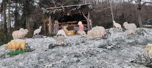Vignes et sapins rappellent l’écrin dans lequel le village et son église se situent. Un château du Haut-Koenigsbourg coiffe le décor, constitué d’un riche ensemble de mousses, champignons, branches, pierres récoltés depuis des semaines par une équipe motivée. Certains éléments de décor reviennent, d’autres non, ou changent de place d’un Noël à l’autre selon l’inspiration de Jean Eblin et la mise en valeur de nouveautés ! L’effectif des santons se complète le long du temps liturgique jusqu’aux Rois Mages, arpentant des chemins tracés de façon réaliste et très escarpés ! Un éclairage soigné accompagne la Sainte Nativité, l’âne, le bœuf et les moutons.